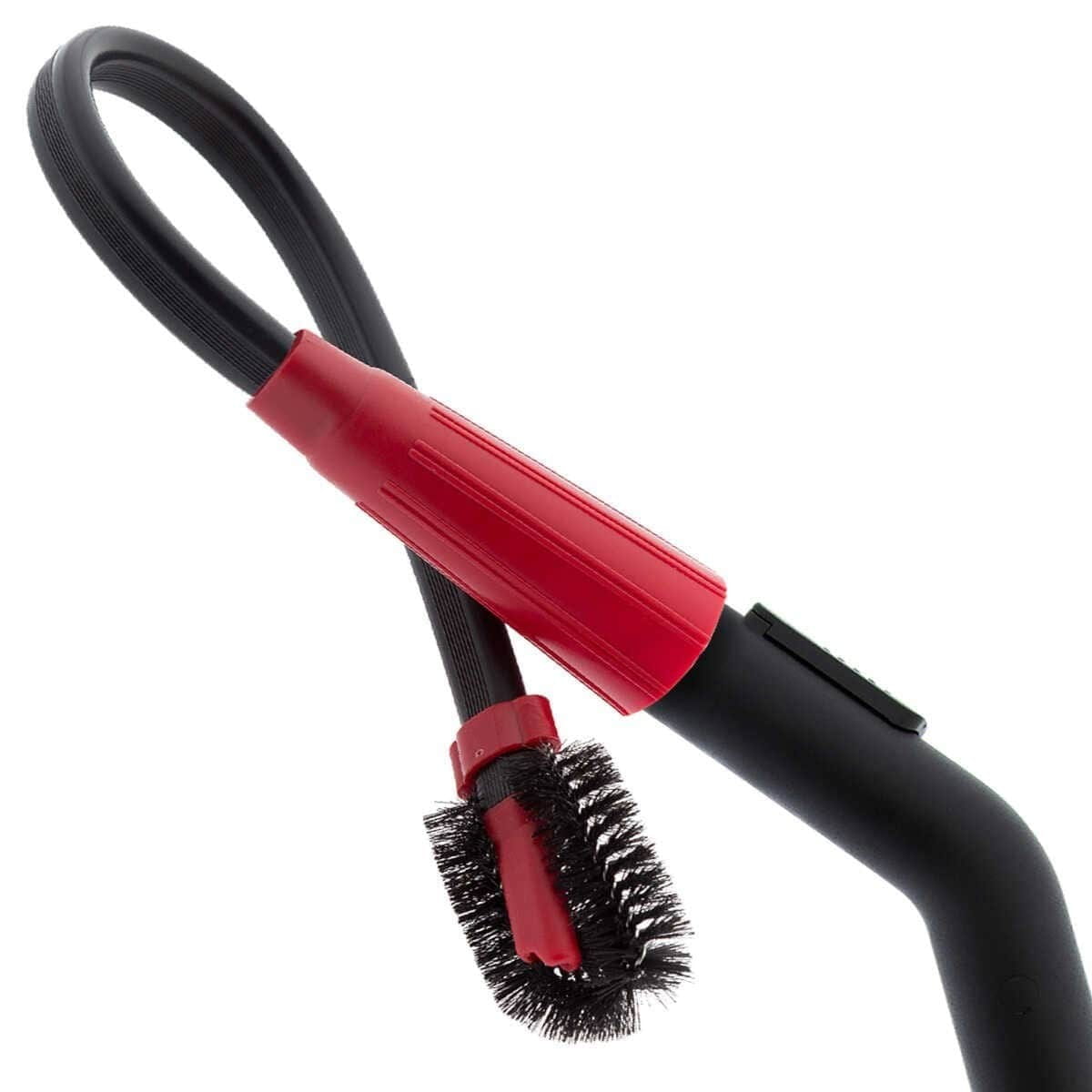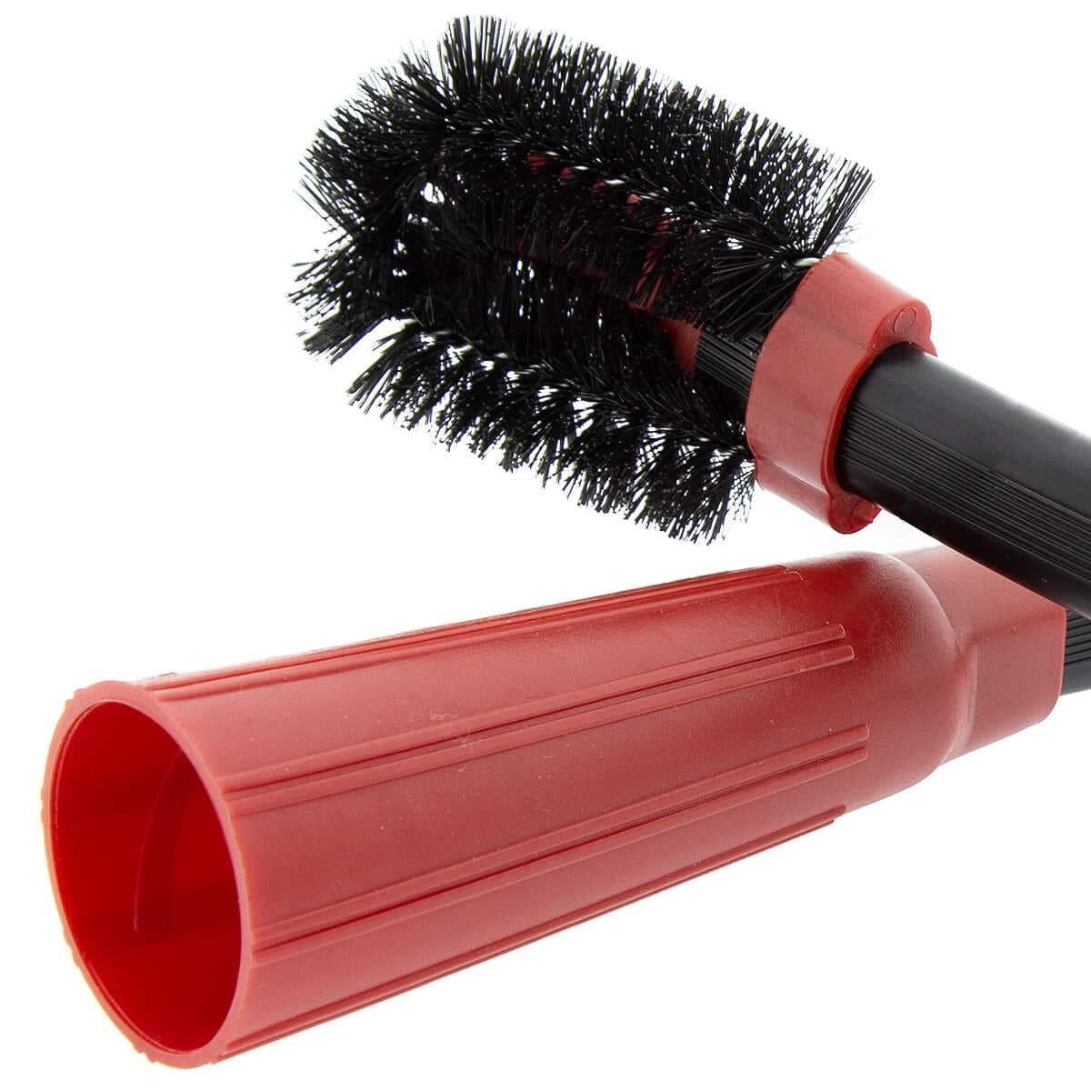 Szczoteczka jest montowana "na wcisk". Możesz ją łatwo zsunąć, jeśli potrzebujesz samej wąskiej końcówki do wyciągnięcia większych zabrudzeń z głębokich szczelin.