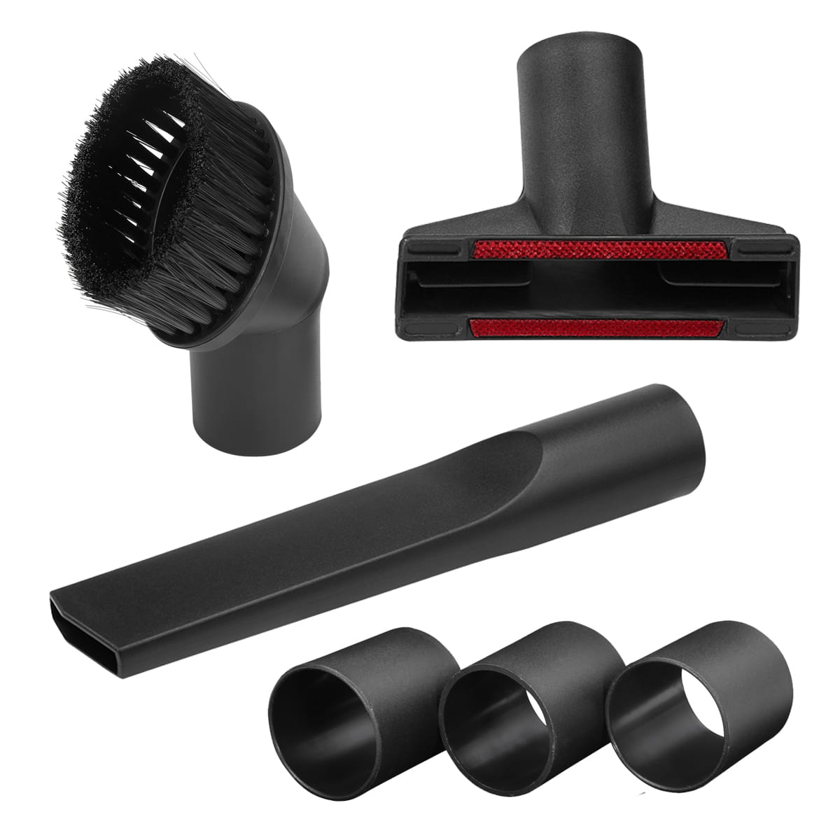 Dodatkowe końcówki, które zmienią Twój odkurzacz garażowy w sprzęt do zadań specjalnych. Idealne do odkurzania samochodu (fotele, zakamarki przy skrzyni biegów) oraz trudno dostępnych miejsc w domu.