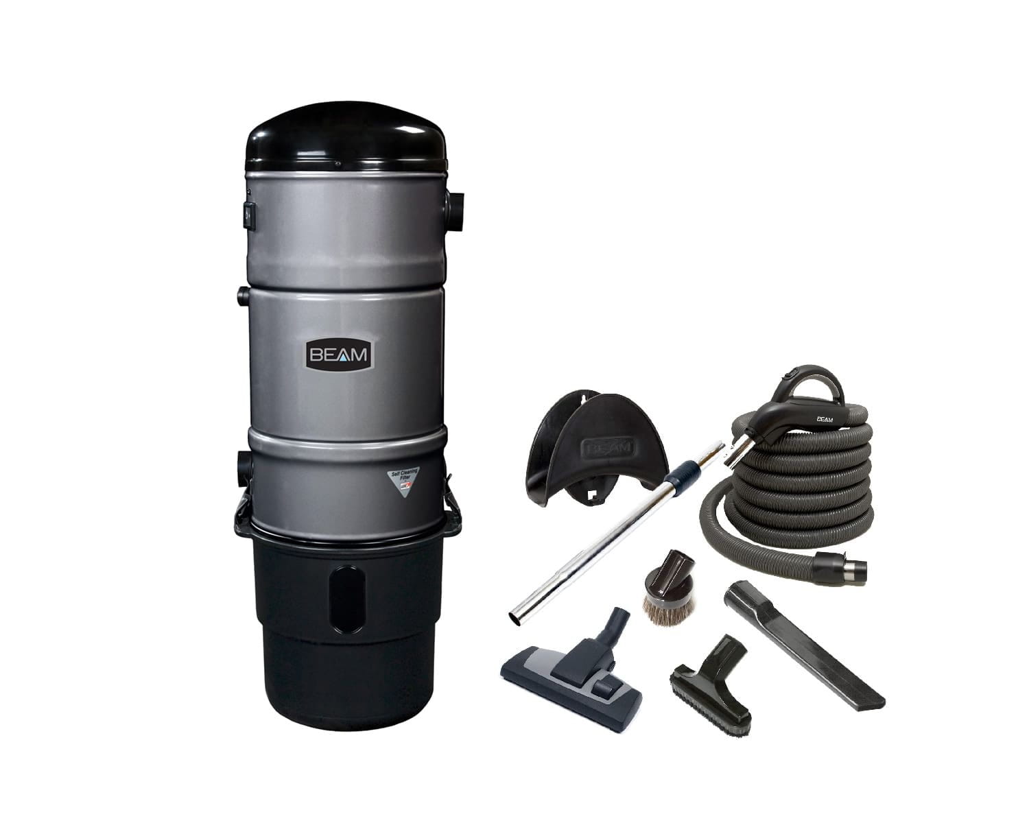 Zestaw zawiera Jednostkę Centralną oraz wąż ssący Nexe 9m z regulacją siły ssania w rączce, wieszak plastikowy na wąż ssący, rurka teleskopowa metalowa z klipsem, szczotka uniwersalna AllVac, szczotka do tapicerki standard, szczotka okrągła standard, ssawka szczelinowa standard