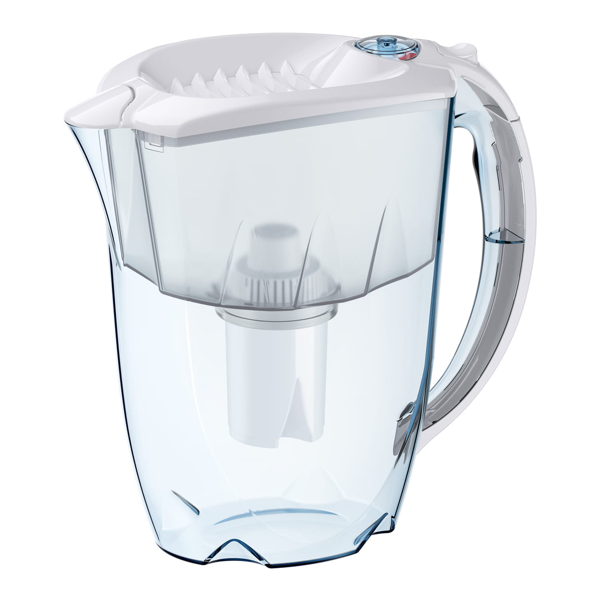 - Mechaniczny wskaźnik zużycia wkładu - wskaźnik mechaniczny, wbudowany w pokrywę dzbanka wizualnie wskazuje poziom zużycia wkładu filtrującego i pomaga dbać o terminową wymianę wkładu. Wskaźnik odnotowuje każde otwarcie pokrywki dzbanka.
