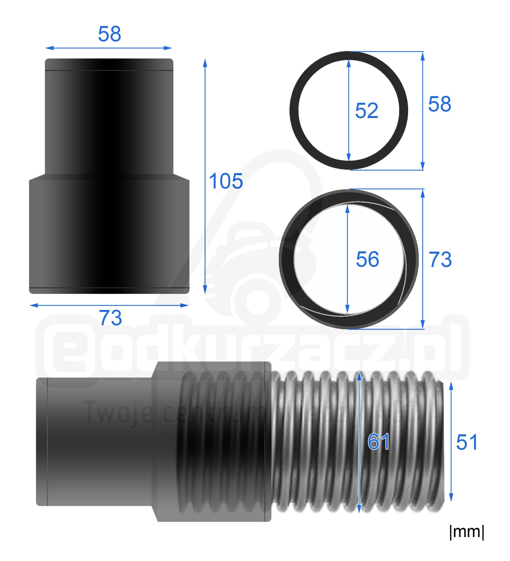 Średnica Węża: Wewnętrzna 51 mm / Zewnętrzna 60 mm.